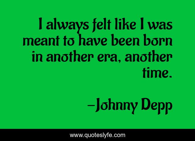 This page presents the quote "I always felt like I was meant to have been born in another era, another time.". Author of this quote is Johnny Depp. This quote is about magazine-interview, vanity-fair, quote, born, era, time, interview,.