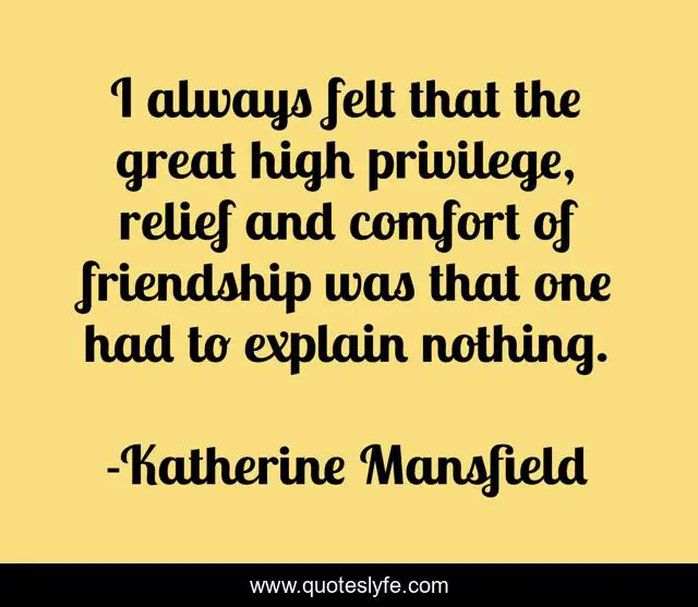 This page presents the quote "I always felt that the great high privilege, relief and comfort of friendship was that one had to explain nothing.". Author of this quote is Katherine Mansfield. This quote is about great, comfort, explain,.