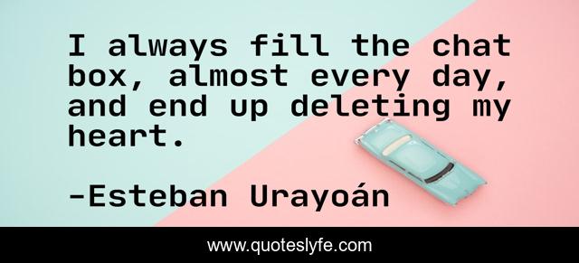 This page presents the quote "I always fill the chat box, almost every day, and end up deleting my heart.". Author of this quote is Esteban Urayoán. This quote is about anxiety, love, depression, affection,.