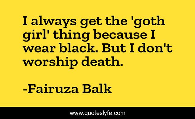 This page presents the quote "I always get the 'goth girl' thing because I wear black. But I don't worship death.". Author of this quote is Fairuza Balk. This quote is about girl, black, worship,.