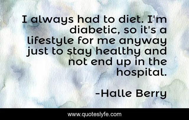 This page presents the quote "I always had to diet. I'm diabetic, so it's a lifestyle for me anyway just to stay healthy and not end up in the hospital.". Author of this quote is Halle Berry. This quote is about me, healthy, end,.