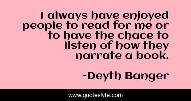 This page presents the quote "I always have enjoyed people to read for me or to have the chace to listen of how they narrate a book.". Author of this quote is Deyth Banger. This quote is about enjoy, always, book, books, audiobooks,.