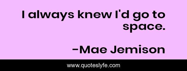 "Mae Jemison Quotes." Quoteslyfe.com, 2025. Fri. 05 Dec. 2025. <https://www.quoteslyfe.com/quote/I-always-knew-I-d-go-to-289503>.