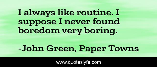This page presents the quote "I always like routine. I suppose I never found boredom very boring.". Author of this quote is John Green, Paper Towns. This quote is about paper-towns, boredom, routine,.