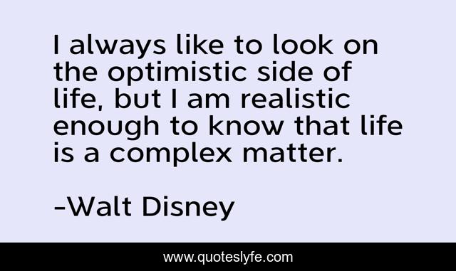 This page presents the quote "I always like to look on the optimistic side of life, but I am realistic enough to know that life is a complex matter.". Author of this quote is Walt Disney. This quote is about life, life is a,.