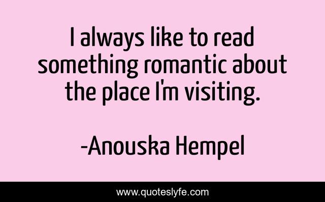 This page presents the quote "I always like to read something romantic about the place I'm visiting.". Author of this quote is Anouska Hempel. This quote is about always, place, like,.