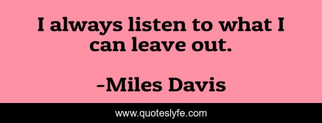 This page presents the quote "I always listen to what I can leave out.". Author of this quote is Miles Davis. This quote is about listening, listening-skills,.