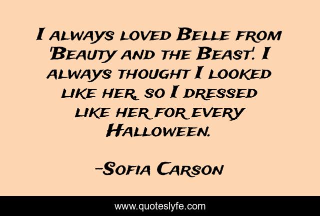 This page presents the quote "I always loved Belle from 'Beauty and the Beast'. I always thought I looked like her, so I dressed like her for every Halloween.". Author of this quote is Sofia Carson. This quote is about thought, loved, halloween,.