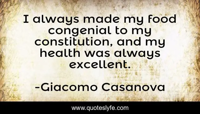 This page presents the quote "I always made my food congenial to my constitution, and my health was always excellent.". Author of this quote is Giacomo Casanova. This quote is about health, constitution,.