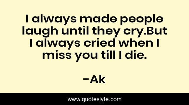 This page presents the quote "I always made people laugh until they cry.But I always cried when I miss you till I die.". Author of this quote is Ak. This quote is about true-love, love, affection,.