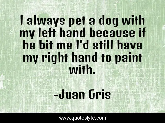 This page presents the quote "I always pet a dog with my left hand because if he bit me I'd still have my right hand to paint with.". Author of this quote is Juan Gris. This quote is about me, paint, dog,.