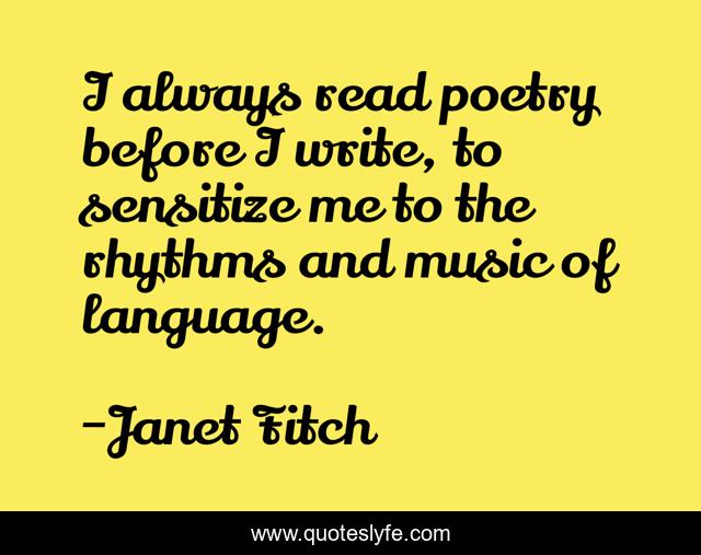 This page presents the quote "I always read poetry before I write, to sensitize me to the rhythms and music of language.". Author of this quote is Janet Fitch. This quote is about me, music, language,.