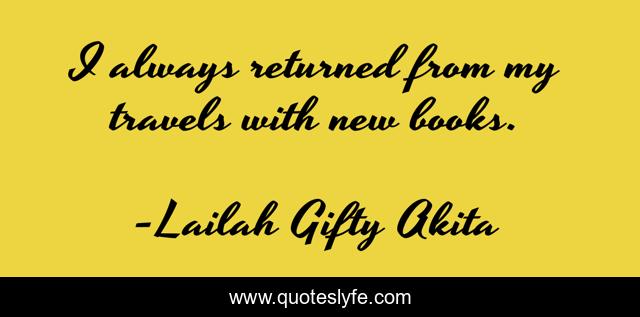 This page presents the quote "I always returned from my travels with new books.". Author of this quote is Lailah Gifty Akita. This quote is about lailah-gifty-akita-affirmations, book-lovers, travel, lifelong-learner, journey, books, inspirational, enthusiasm, education,.