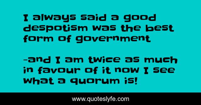 "and I am twice as much in favour of it now I see what a quorum is! Quotes." Quoteslyfe.com, 2025. Mon. 08 Dec. 2025. <https://www.quoteslyfe.com/quote/I-always-said-a-good-despotism-was-174258>.