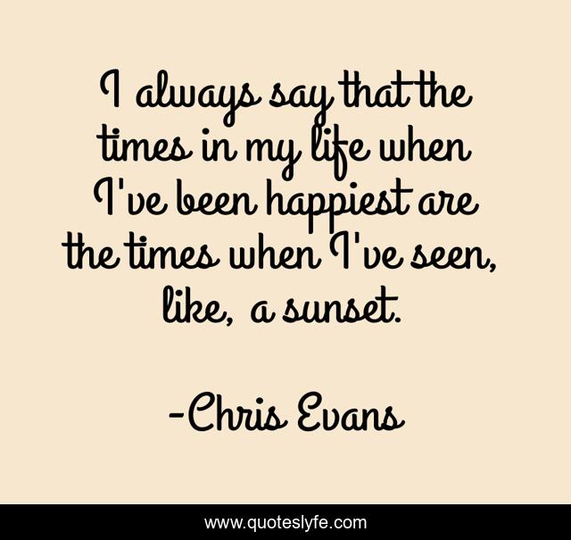 This page presents the quote "I always say that the times in my life when I've been happiest are the times when I've seen, like, a sunset.". Author of this quote is Chris Evans. This quote is about my life, sunset,.