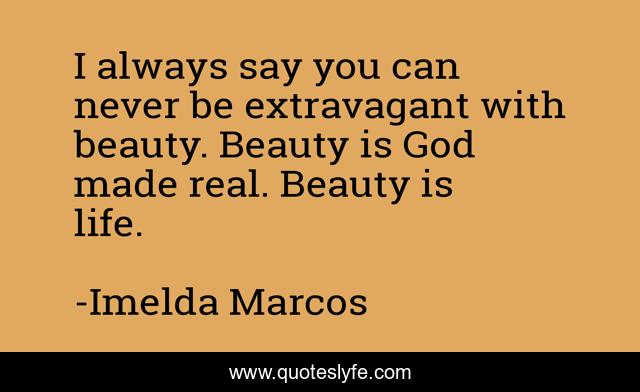 This page presents the quote "I always say you can never be extravagant with beauty. Beauty is God made real. Beauty is life.". Author of this quote is Imelda Marcos. This quote is about life, beauty,.