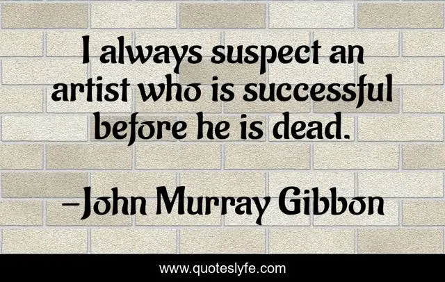This page presents the quote "I always suspect an artist who is successful before he is dead.". Author of this quote is John Murray Gibbon. This quote is about art, artist,.
