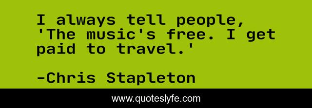 This page presents the quote "I always tell people, 'The music's free. I get paid to travel.'". Author of this quote is Chris Stapleton. This quote is about music, free, people,.