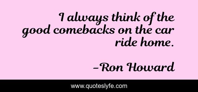 This page presents the quote "I always think of the good comebacks on the car ride home.". Author of this quote is Ron Howard. This quote is about home, good, think,.