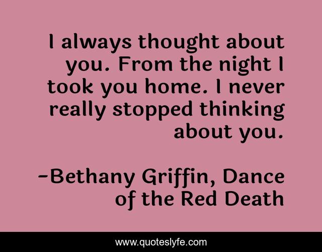 This page presents the quote "I always thought about you. From the night I took you home. I never really stopped thinking about you.". Author of this quote is Bethany Griffin, Dance of the Red Death. .
