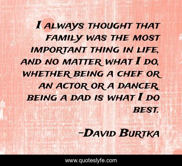 This page presents the quote "I always thought that family was the most important thing in life, and no matter what I do, whether being a chef or an actor or a dancer, being a dad is what I do best.". Author of this quote is David Burtka. This quote is about life, family, best,.