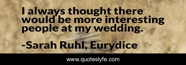 This page presents the quote "I always thought there would be more interesting people at my wedding.". Author of this quote is Sarah Ruhl, Eurydice. This quote is about play, weddings, disappointment,.