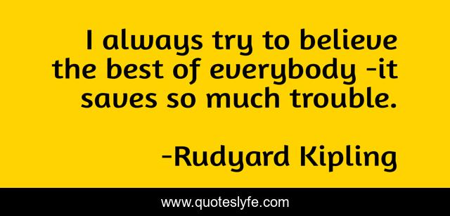 This page presents the quote "I always try to believe the best of everybody -it saves so much trouble.". Author of this quote is Rudyard Kipling. This quote is about trouble, best,.