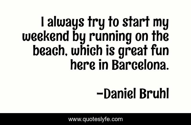 This page presents the quote "I always try to start my weekend by running on the beach, which is great fun here in Barcelona.". Author of this quote is Daniel Bruhl. This quote is about fun, start, beach,.