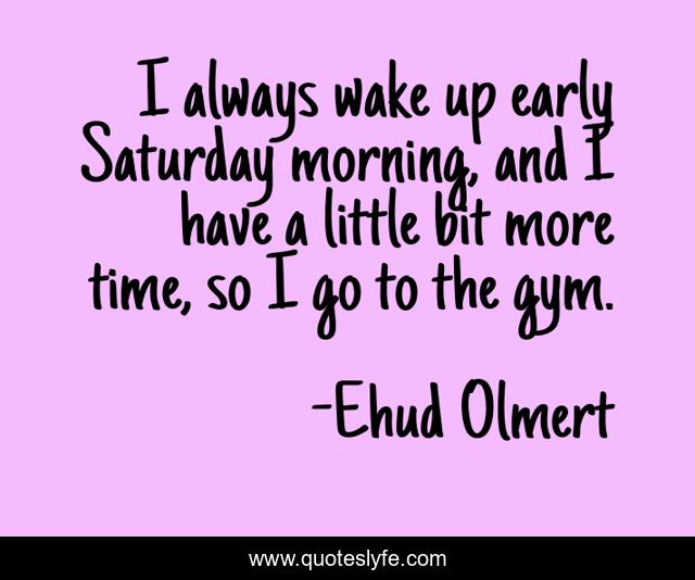 This page presents the quote "I always wake up early Saturday morning, and I have a little bit more time, so I go to the gym.". Author of this quote is Ehud Olmert. This quote is about wake up, early, time,.