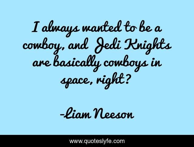 This page presents the quote "I always wanted to be a cowboy, and Jedi Knights are basically cowboys in space, right?". Author of this quote is Liam Neeson. This quote is about always, right, cowboy,.