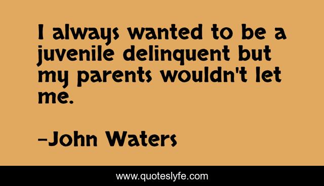 This page presents the quote "I always wanted to be a juvenile delinquent but my parents wouldn't let me.". Author of this quote is John Waters. .