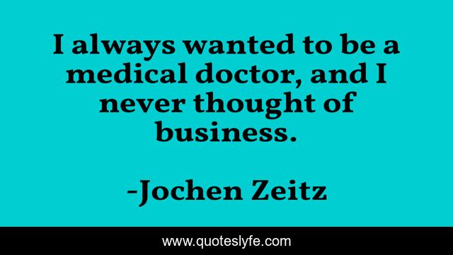 This page presents the quote "I always wanted to be a medical doctor, and I never thought of business.". Author of this quote is Jochen Zeitz. This quote is about thought, business, doctor,.