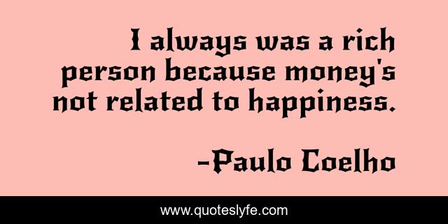 This page presents the quote "I always was a rich person because money's not related to happiness.". Author of this quote is Paulo Coelho. This quote is about money, rich, person,.