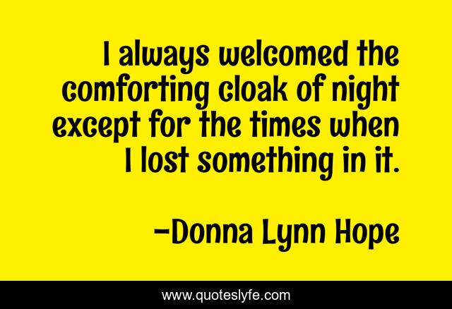 "Donna Lynn Hope Quotes." Quoteslyfe.com, 2025. Sun. 07 Dec. 2025. <https://www.quoteslyfe.com/quote/I-always-welcomed-the-comforting-cloak-of-122962>.