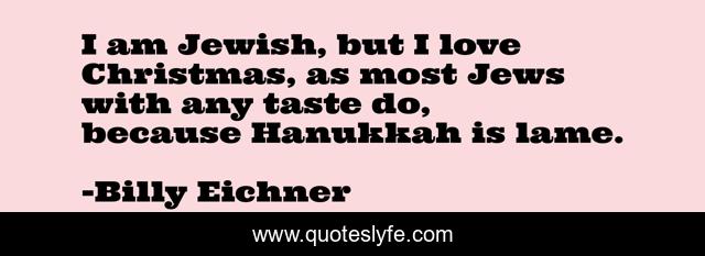 This page presents the quote "I am Jewish, but I love Christmas, as most Jews with any taste do, because Hanukkah is lame.". Author of this quote is Billy Eichner. This quote is about taste, love, affection,.