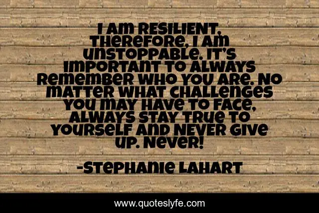 "Stephanie Lahart Quotes." Quoteslyfe.com, 2025. Fri. 05 Dec. 2025. <https://www.quoteslyfe.com/quote/I-am-RESILIENT-therefore-I-am-unstoppable-59329>.
