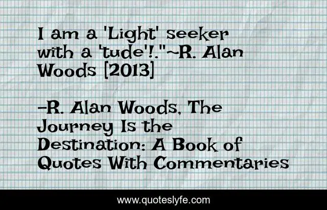 "R. Alan Woods, The Journey Is the Destination: A Book of Quotes With Commentaries Quotes." Quoteslyfe.com, 2025. Sat. 06 Dec. 2025. <https://www.quoteslyfe.com/quote/I-am-a-Light-seeker-with-a-179990>.