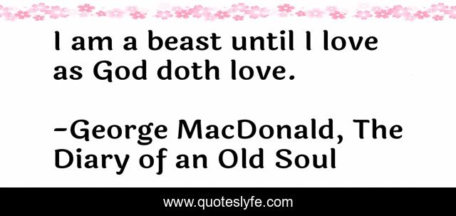 "George MacDonald, The Diary of an Old Soul Quotes." Quoteslyfe.com, 2025. Fri. 05 Dec. 2025. <https://www.quoteslyfe.com/quote/I-am-a-beast-until-I-love-240433>.