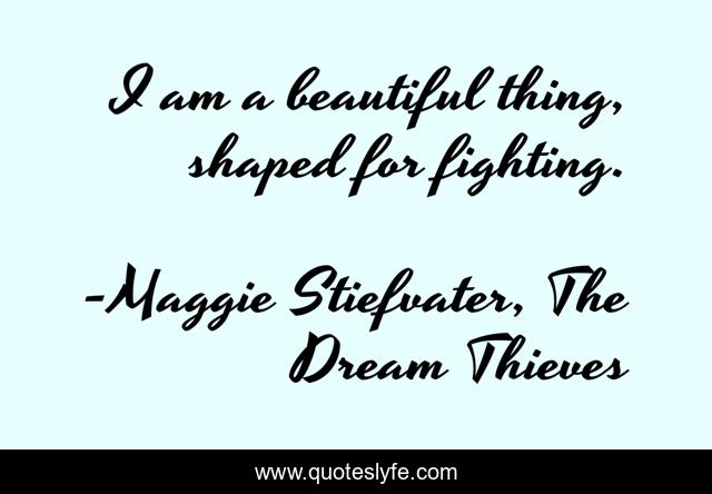This page presents the quote "I am a beautiful thing, shaped for fighting.". Author of this quote is Maggie Stiefvater, The Dream Thieves. This quote is about the-raven-cycle, fighting,.