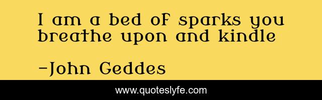This page presents the quote "I am a bed of sparks you breathe upon and kindle". Author of this quote is John Geddes. This quote is about desire, romance, passion,.