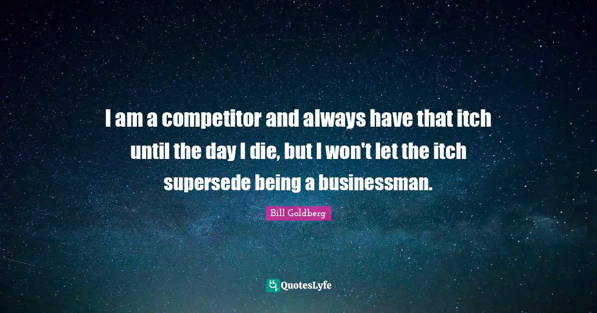 This page presents the quote "I am a competitor and always have that itch until the day I die, but I won't let the itch supersede being a businessman.". Author of this quote is Bill Goldberg. This quote is about businessman, dies, competitors,.