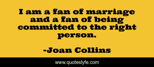 This page presents the quote "I am a fan of marriage and a fan of being committed to the right person.". Author of this quote is Joan Collins. .