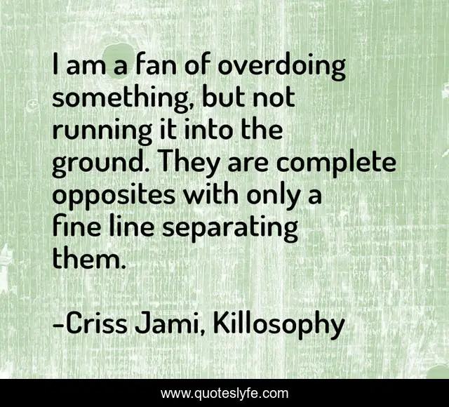 "Criss Jami, Killosophy Quotes." Quoteslyfe.com, 2025. Fri. 05 Dec. 2025. <https://www.quoteslyfe.com/quote/I-am-a-fan-of-overdoing-something-210170>.
