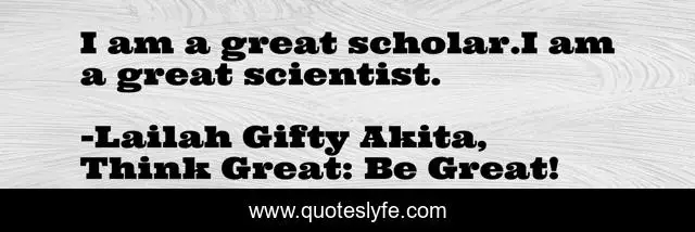 "Lailah Gifty Akita, Think Great: Be Great! Quotes." Quoteslyfe.com, 2025. Sat. 06 Dec. 2025. <https://www.quoteslyfe.com/quote/I-am-a-great-scholar-I-am-140404>.