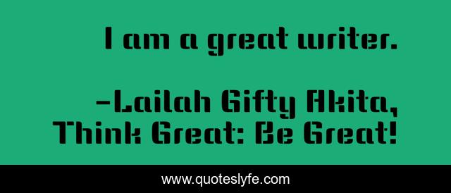 "Lailah Gifty Akita, Think Great: Be Great! Quotes." Quoteslyfe.com, 2025. Sat. 06 Dec. 2025. <https://www.quoteslyfe.com/quote/I-am-a-great-writer-124095>.