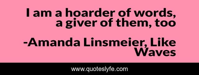 "Amanda Linsmeier, Like Waves Quotes." Quoteslyfe.com, 2025. Mon. 08 Dec. 2025. <https://www.quoteslyfe.com/quote/I-am-a-hoarder-of-words-a-182081>.