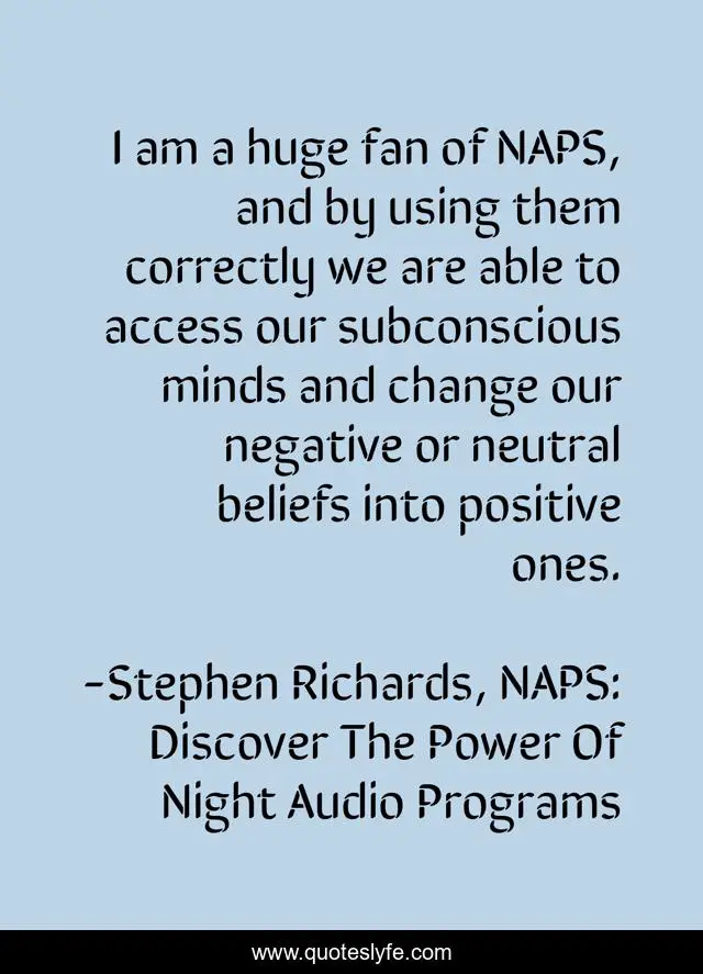"Stephen Richards, NAPS: Discover The Power Of Night Audio Programs Quotes." Quoteslyfe.com, 2025. Mon. 08 Dec. 2025. <https://www.quoteslyfe.com/quote/I-am-a-huge-fan-of-NAPS-159509>.