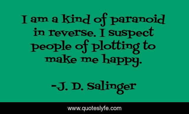 This page presents the quote "I am a kind of paranoid in reverse. I suspect people of plotting to make me happy.". Author of this quote is J. D. Salinger. This quote is about me, happy,.