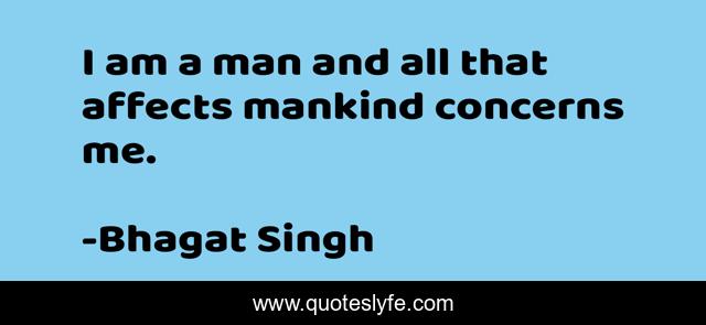This page presents the quote "I am a man and all that affects mankind concerns me.". Author of this quote is Bhagat Singh. This quote is about mankind, concern,.