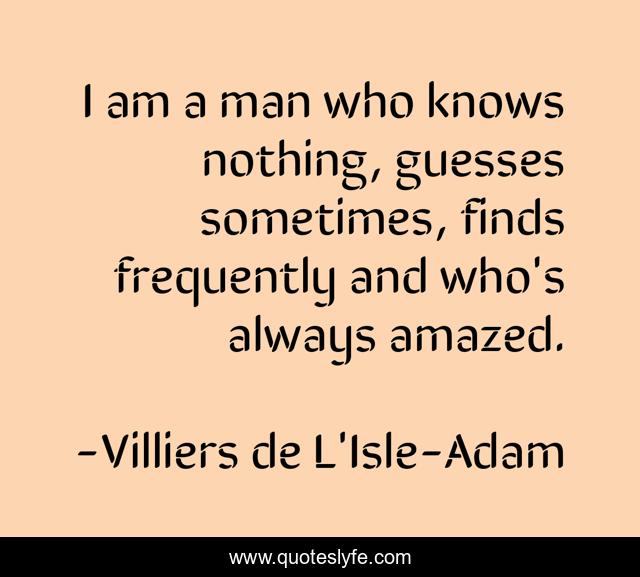 "Villiers de L'Isle-Adam Quotes." Quoteslyfe.com, 2025. Tue. 09 Dec. 2025. <https://www.quoteslyfe.com/quote/I-am-a-man-who-knows-nothing-30604>.
